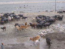 At the edge of the River Ganges, these cattle and water buffalo were being gathered. I didn't see if they were just there