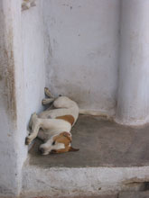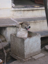 It's pretty hot in Udaipur during April, and this dog had found a way to cool off in a shady spot. It looks like the photo is going the wrong