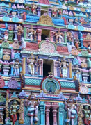 carved and vibrantly painted figures of Hindu dieties. This is one of many such striking temples in Chennai (Madras).