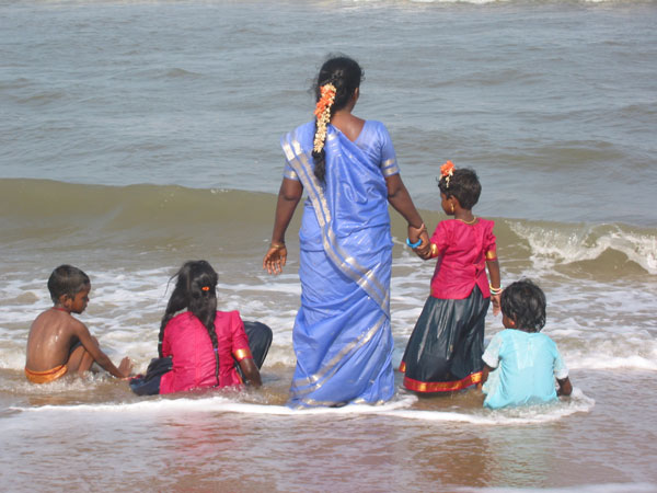 This group of bathers was having a wonderful time enjoying the cool waters of the Indian Ocean. The modest women of India