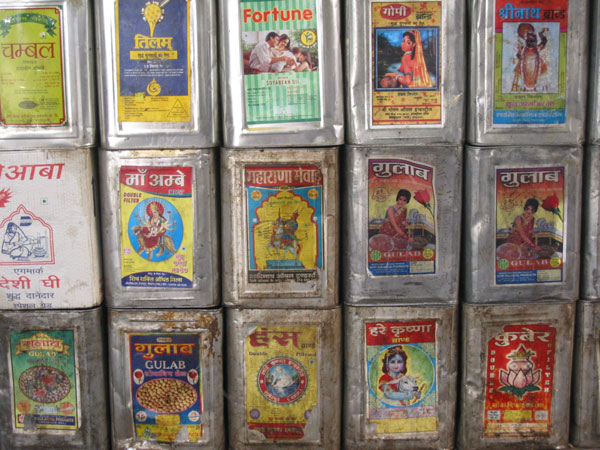 These oil cans were neatly stacked in the market to mark the boundaries of a vendor's stall. I thought they looked beautiful together and